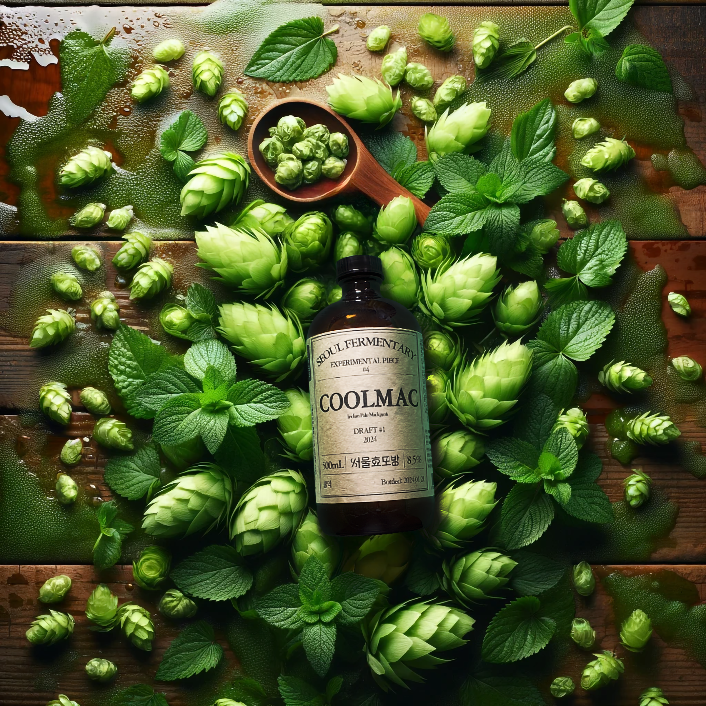 クールマックは、ホップを韓国酒に取り入れたHazy IPA風のIPM(インディア・ペール・マッコリ)ジャンルの酒です。ホップのα-アシッドが酒を濁らせることに着目し、伝統的なマッコリを基にホップとハーブを繊細に溶け込ませ、韓国酒とホップが出会ったときの可能性を示します。