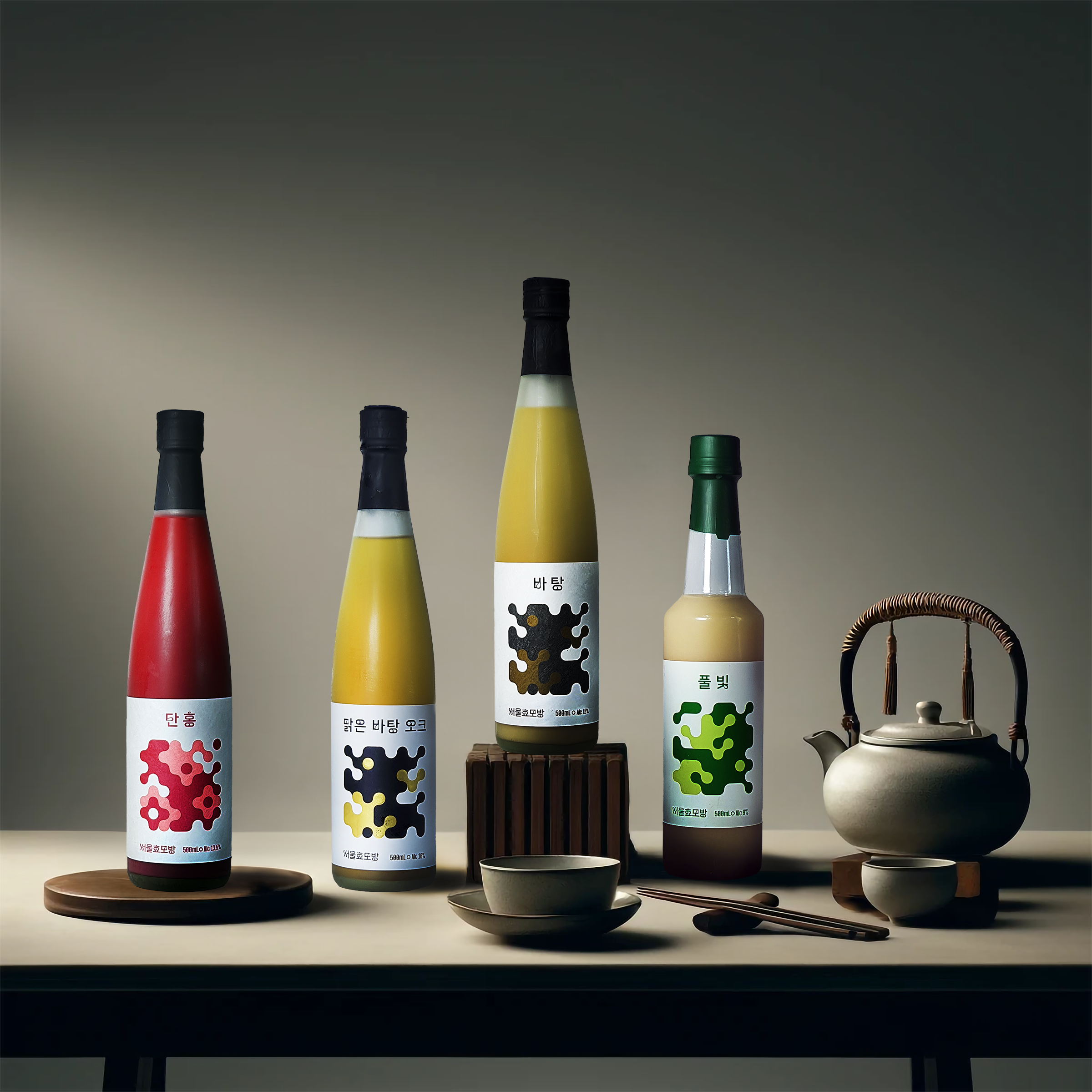 試行錯誤で一貫性のない体験しか提供できない伝統酒や、大量生産のために深みを失った近代のマッコリの後に、私たちは道具ではなく体験としての新たなアイデンティティを持つ現代の韓国酒が必要です。 ソウルヒョモバンは、千軒の家で千のレシピで酒を造る家庭醸造の伝統を受け継ぎ、韓国酒に特有の概念主義製品として発展させ、ポストモダン韓国酒としての新たなアイデンティティを提案します。